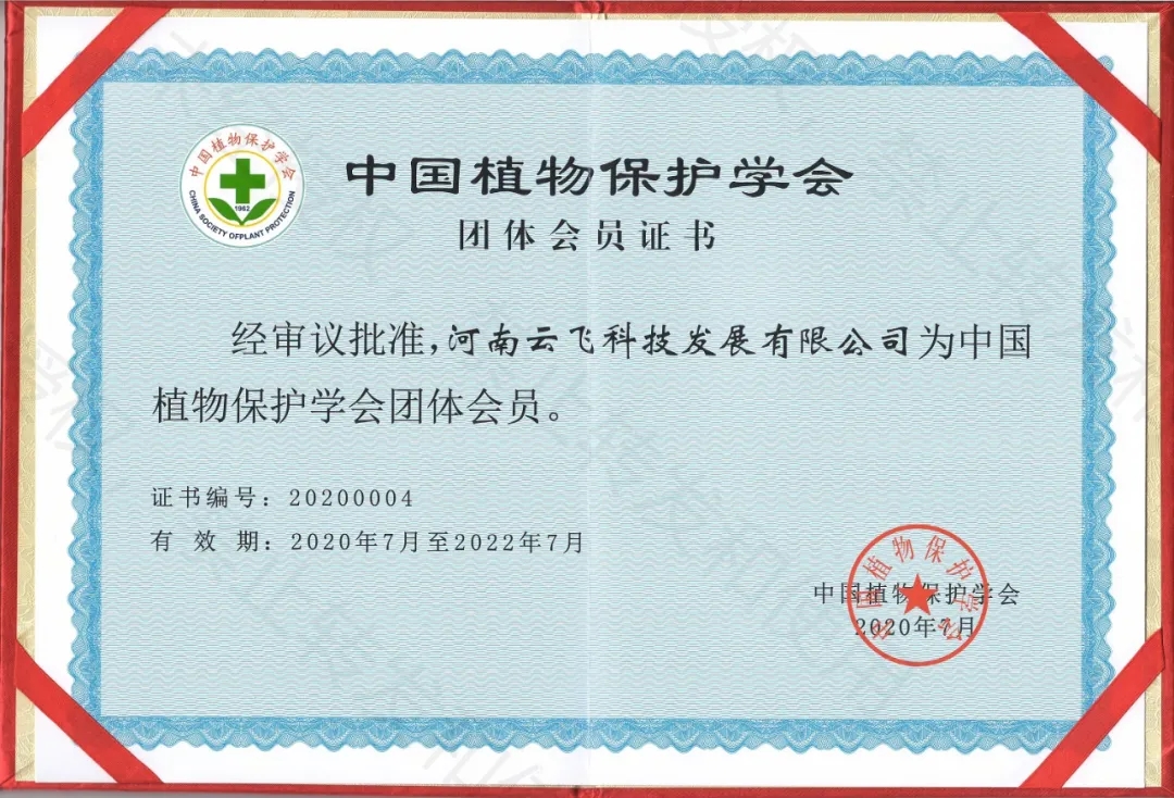 2020年7月,經(jīng)審議批準,河南云飛科技發(fā)展有限公司正式成為中國植物保護學會團體會員。