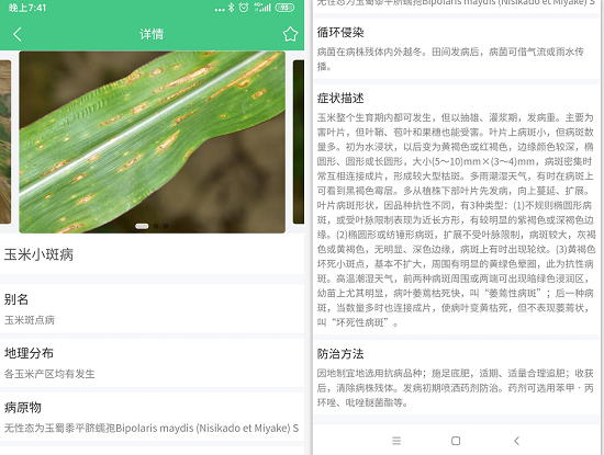 其實目前已經(jīng)有很多軟件,可通過拍照,就能分辨病害!上面就是知蟲APP,對于玉米病害的識別結果,操作很簡單,拍一張照片,就能分辨種類,同時還給出防治的辦法。為種植提供了參考的信息。