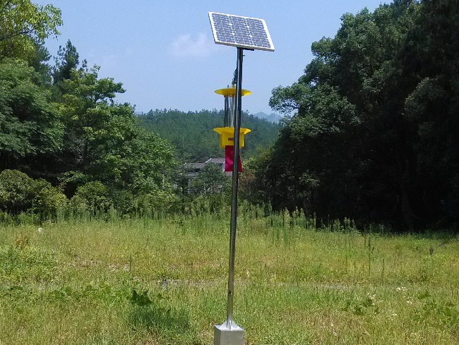 頻振式殺蟲燈通過光誘原理誘殺害蟲,晚上燈光亮起,同時(shí)也會(huì)釋放特殊的光波,害蟲被燈光吸引后就會(huì)靠近殺蟲燈,當(dāng)害蟲靠近殺蟲燈后,就會(huì)被表面的電網(wǎng)擊殺,擊殺后的害蟲會(huì)落入接蟲袋,整個(gè)殺蟲的過程不需要人工參與。頻振式殺蟲燈的供電方式采用太陽能板和蓄電池供電,白天太陽能板為蓄電池充電,晚上蓄電池釋放電量保證設(shè)備工作。