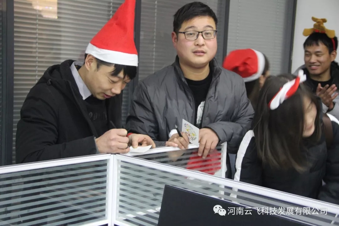 云飛今年圣誕節(jié)慶祝方式不太一樣!特為慶祝圣誕節(jié)安排了一攬子計(jì)劃!圣誕節(jié)前一天每人發(fā)了圣誕帽和圣誕頭飾、領(lǐng)了平安果、大家互相贈(zèng)送了賀卡、還一起學(xué)習(xí)了優(yōu)秀員工的經(jīng)驗(yàn)、包場(chǎng)看電影!
